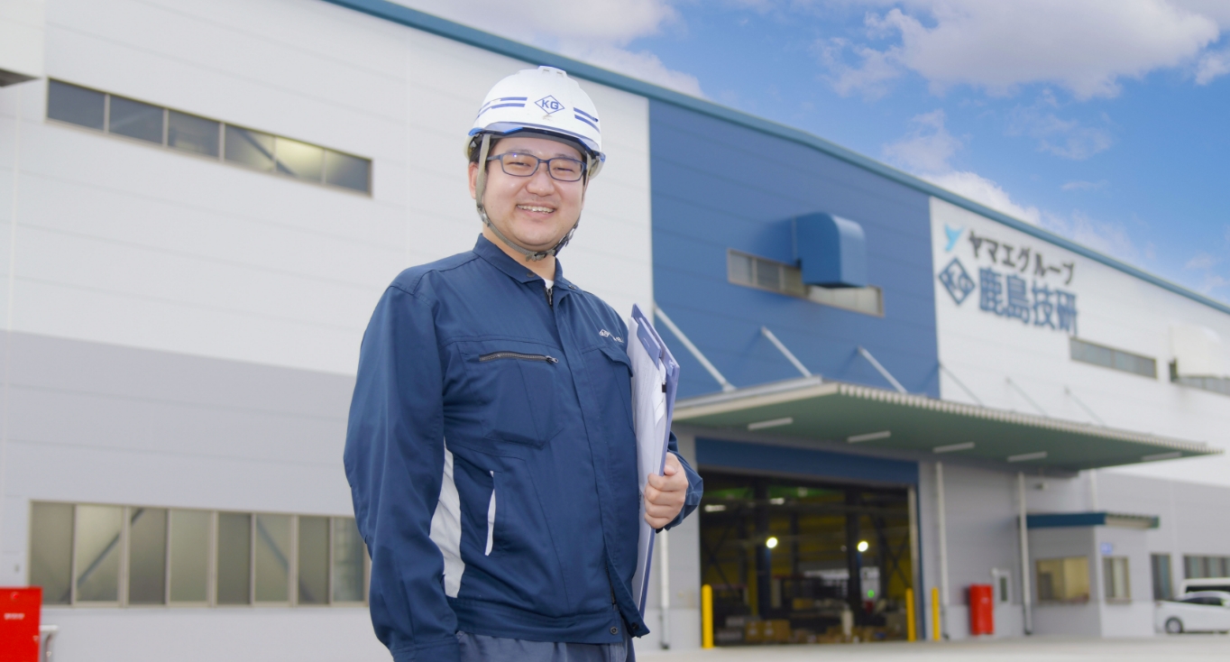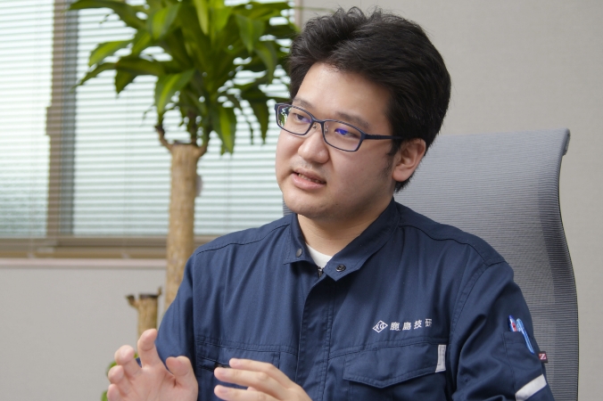 - 昔から建築関係に興味があり、大学も建築系の学科を卒業しました。ずっと飯塚にいるので、このまま飯塚で仕事がしたいという思いがあり、地元の建築関連企業を調べたところ、鹿島技研に出会うことができたんです。連絡をして工場見学をしたところ、会社の雰囲気や条件が良かったこと、一生役に立つ技術が身につくことに惹かれ、すぐに入社を決意しました。