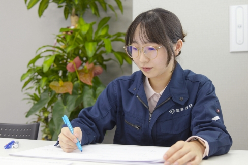 - ずっと興味のあった設計の仕事に就きたいと思い、就職活動は設計職で探していました。地元は熊本なのですが、大学で広島に行ったので、就職の際には九州に戻りたいという思いがあり、九州の設計職を探していたところ鹿島技研を見つけたんです。大学時代はインテリアについて学んでいたので、ホームページを見て、「型枠」という私にとって未知の世界のものに携われることに惹かれ、入社しました。