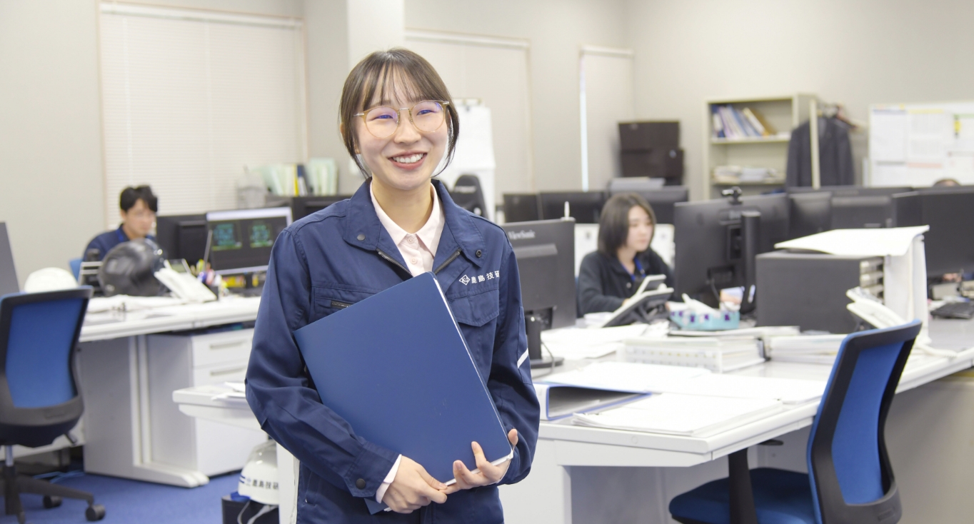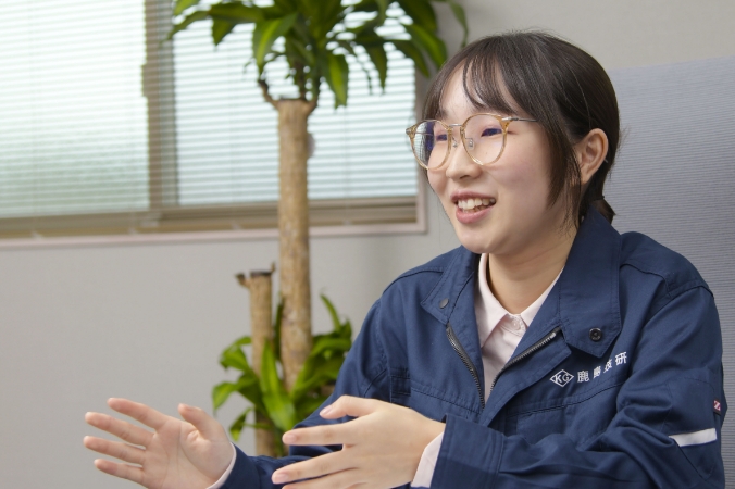 - 会社というものはどこもカチッとして堅苦しい雰囲気なんだろうな…と勝手に思い込んでいたのですが、鹿島技研は思っていたよりもずっと自由に働ける環境があり驚きました。学生時代の友人と話をしていると、上司に何でも言える環境があることや休みが取りやすいことに気づかされ、「鹿島技研で良かった」と思わず思ってしまいました。やりたいことを応援してもらえる社風もあるので、「何にでも挑戦したい」と考えている人に最適な会社だと思います。